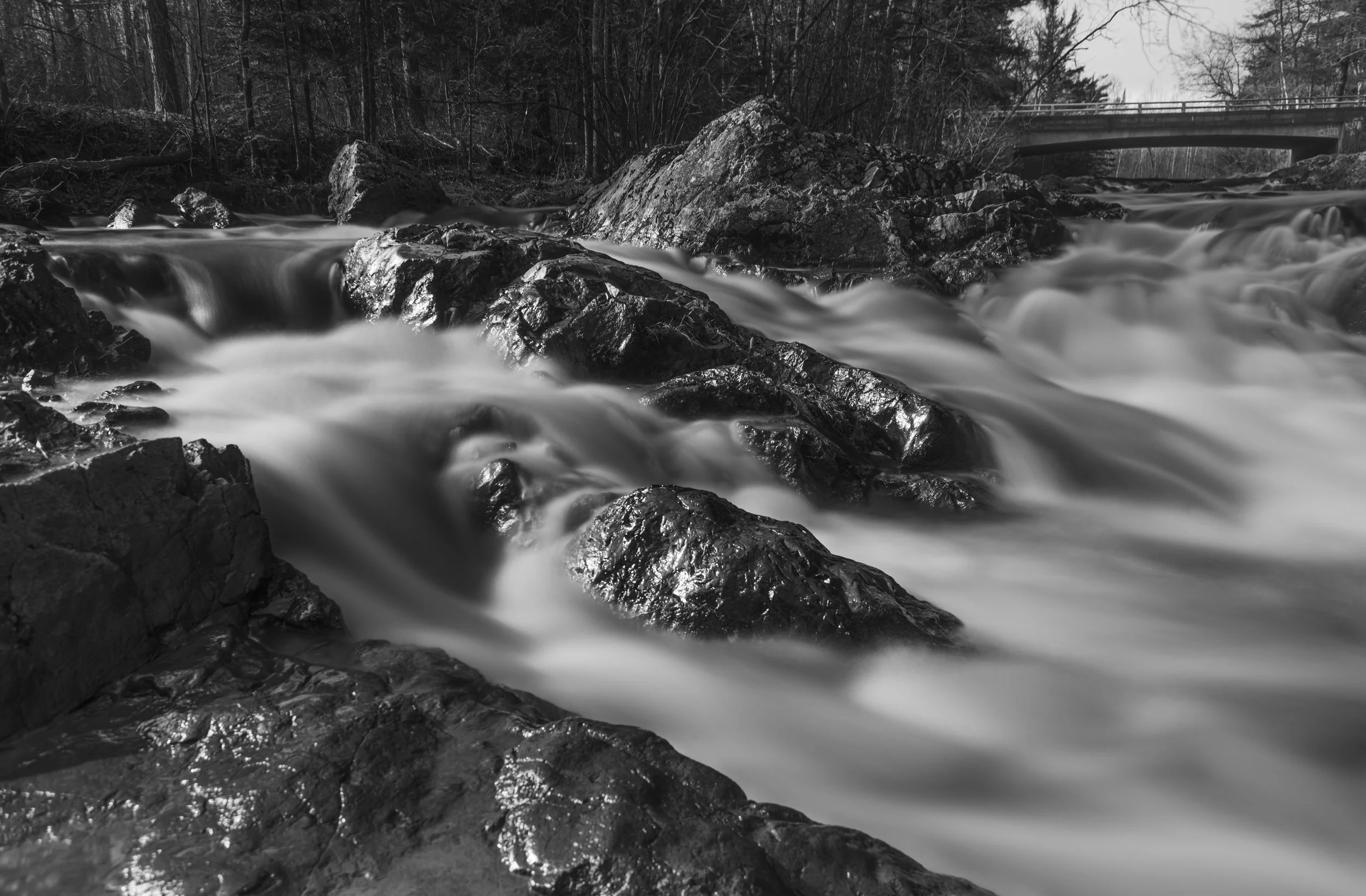 About a week after majority of the winter ice melt began, I was in the hunt for waterfalls that were mostly clear of any snow and ice. Amnicon Falls was still under a good amount of ice but this section was relatively clear. The river was just flowing immensely and I had noticed the rock formation composed in a certain way displayed a rock taking a fresh bath in the Amnicon River.